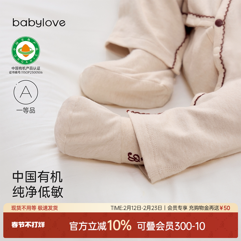 babylove中国有机天然低敏脚套新生儿春秋婴儿纯棉鞋套宝宝袜套