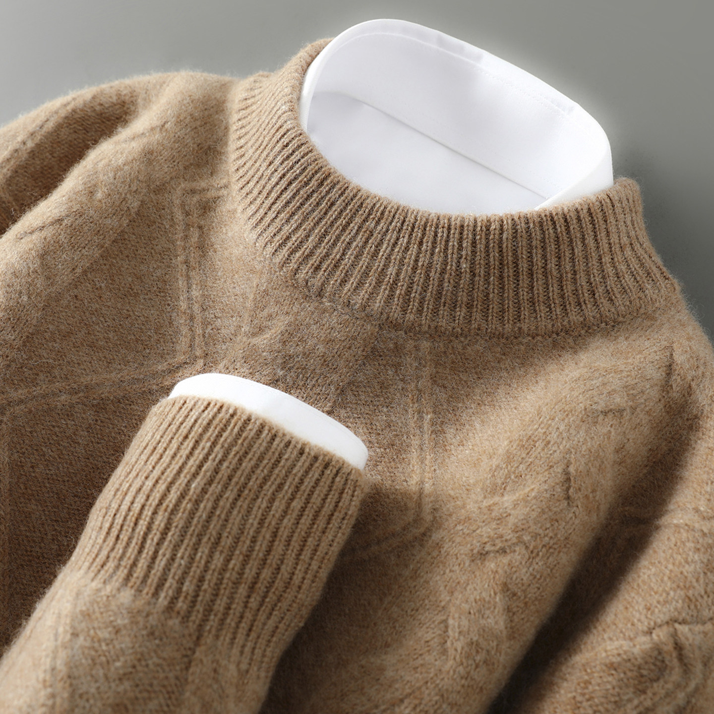 加厚100%纯羊毛衫半高领男毛衣秋冬季麻花休闲宽松套头针织打底衫