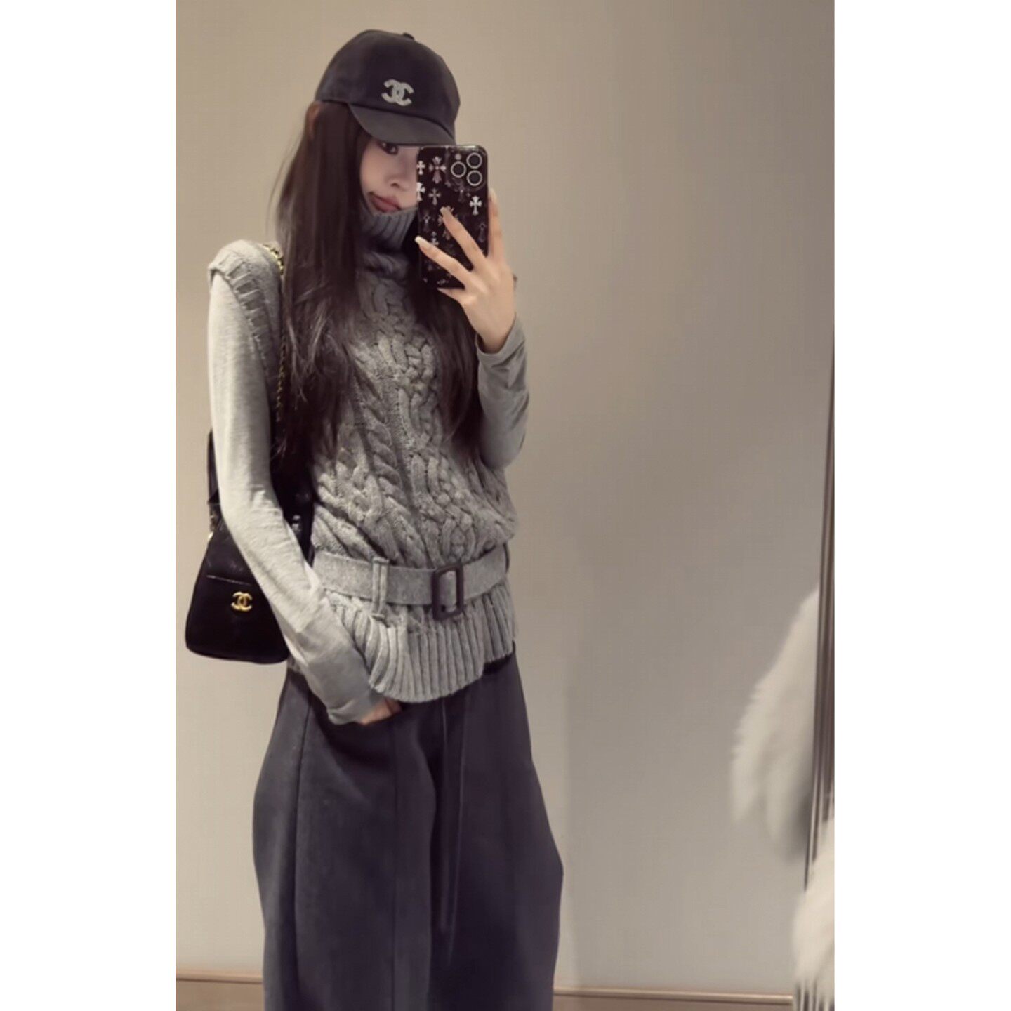 灰色高领套头麻花毛衣女秋冬宽松无袖针织衫叠穿马甲背心马夹上衣