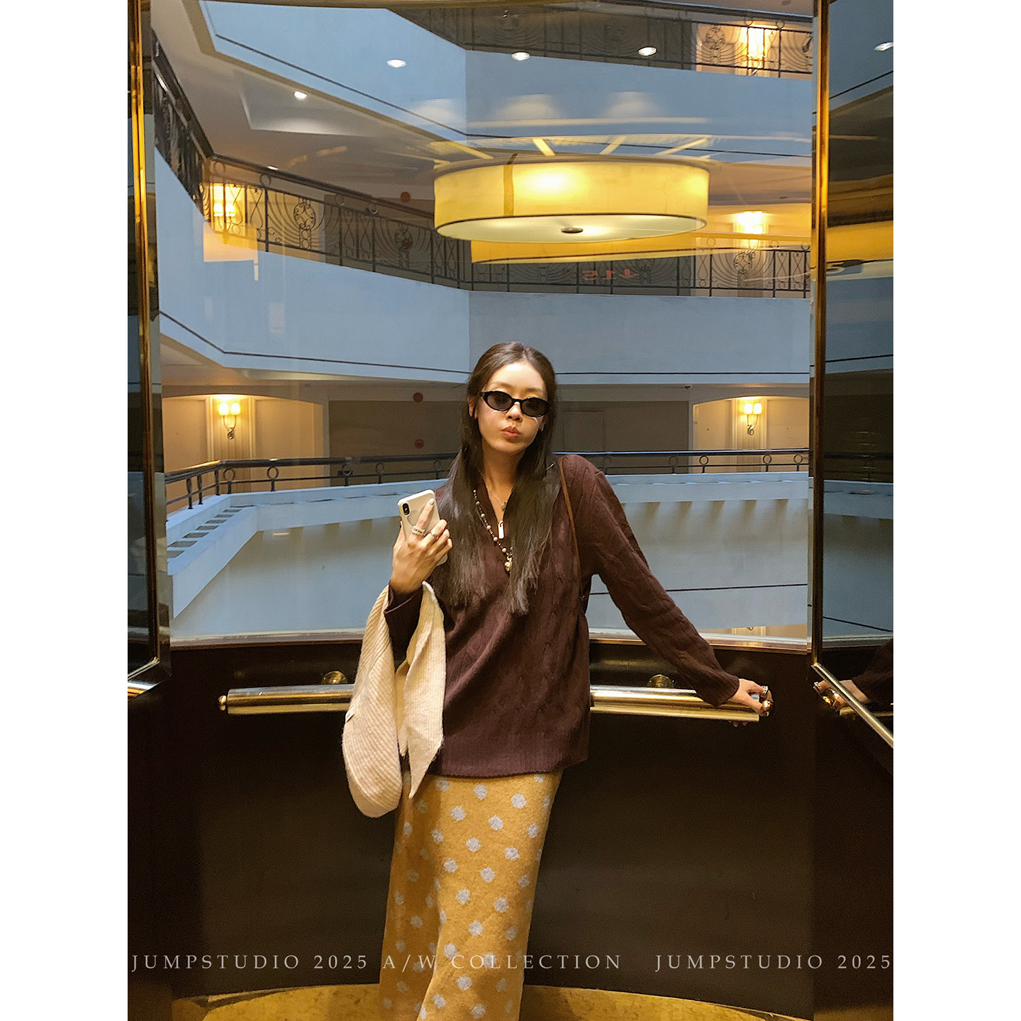 pusumede【现货6折】套头毛衣女麻花半高领针织衫宽松休闲上衣
