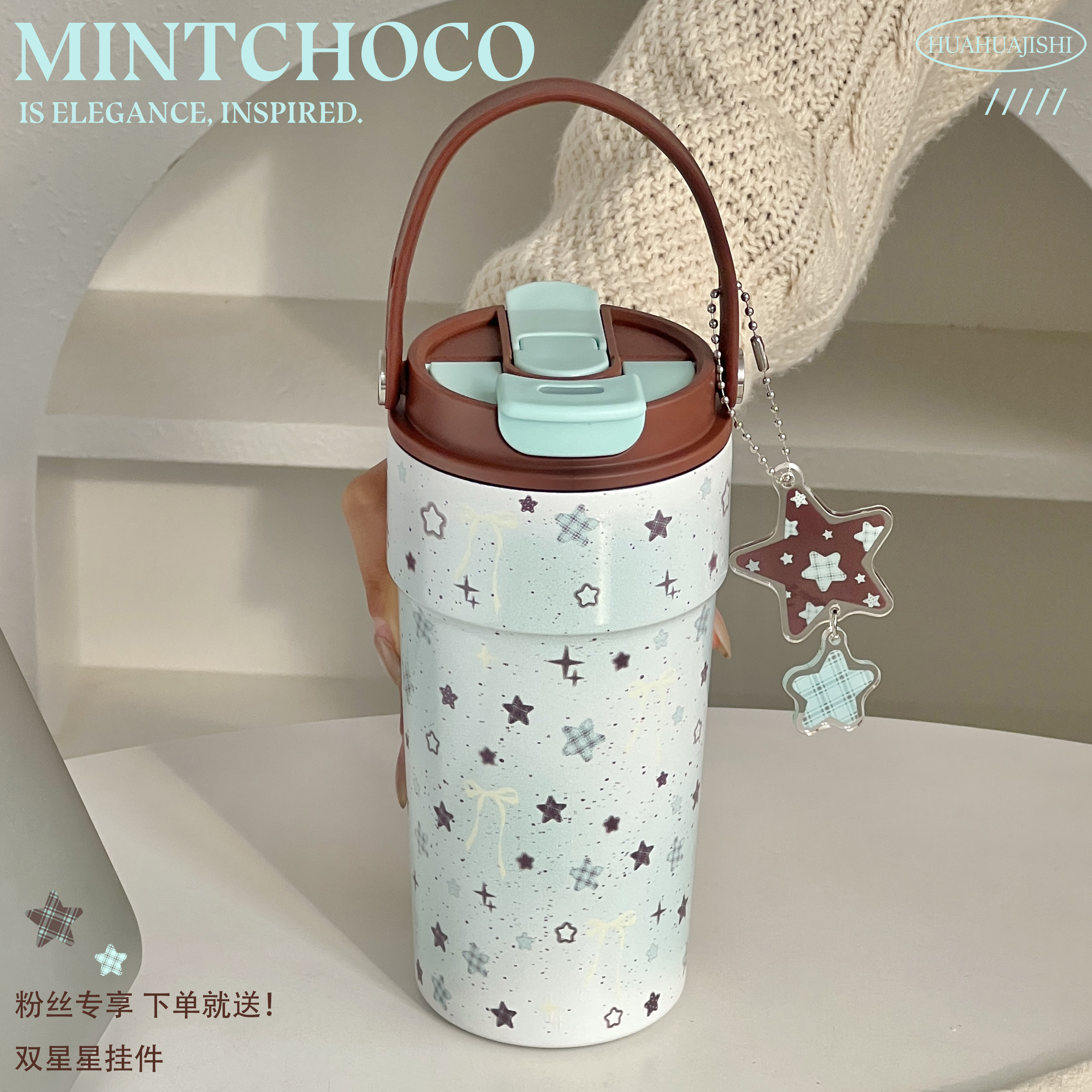 薄巧星星保冷保温吸管水杯可爱高颜值不锈钢便携随行杯子生日礼物