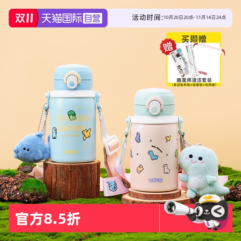 【自营】膳魔师不锈钢保温吸管水杯子一盖双饮便携小恐龙儿童学生
