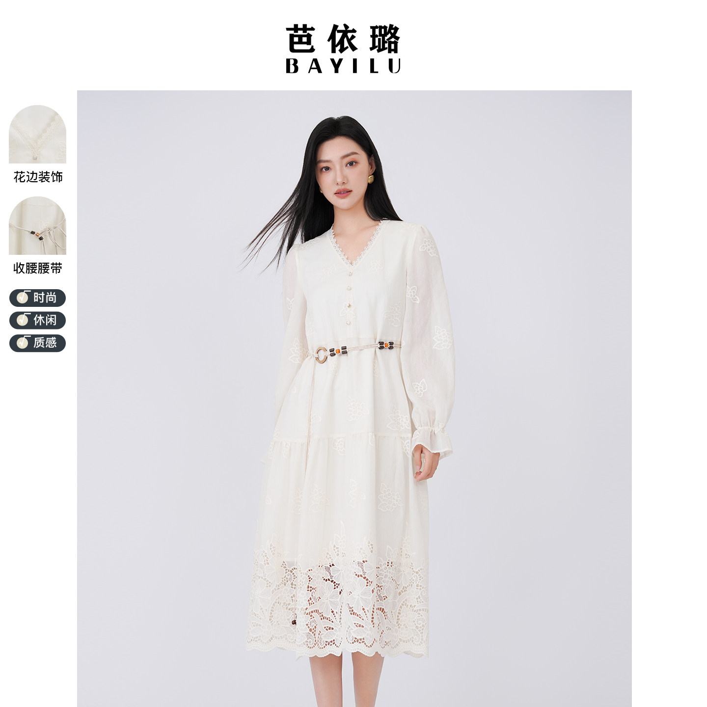 - 蕾丝白色连衣裙秋