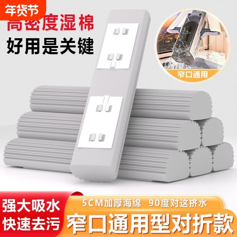 10个装胶棉拖通用对折式海绵拖把头家用吸水替换装窄口挤水拖把头