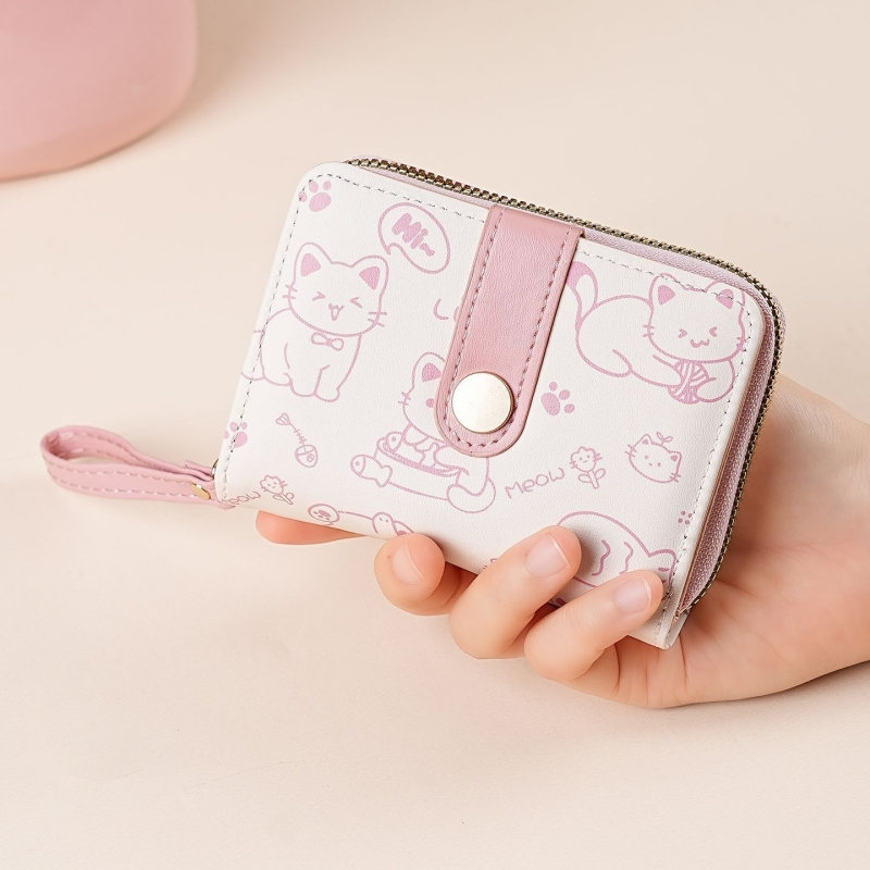 新款猫咪卡包女款ins复古可爱轻薄简约迷你证件零钱拉链收纳钱包