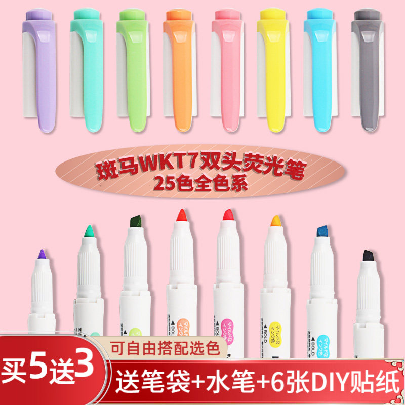 日本ZEBRA斑马牌荧光笔WKT7套装不晕染双头标记笔记号笔mildliner手账笔彩色银光笔