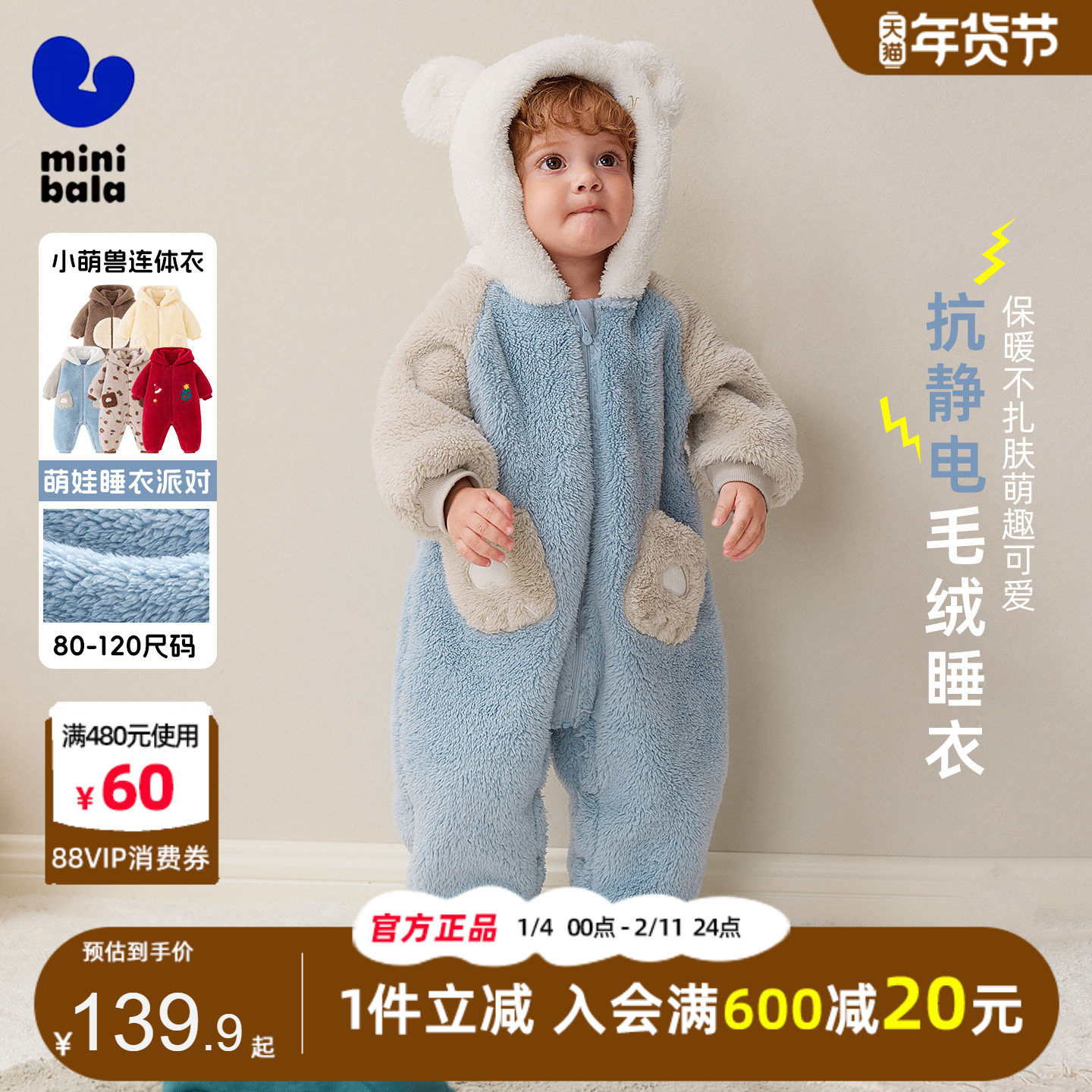 迷你巴拉巴拉婴儿连体衣儿童宝宝抗静电舒适保暖珊瑚绒爬服秋冬季