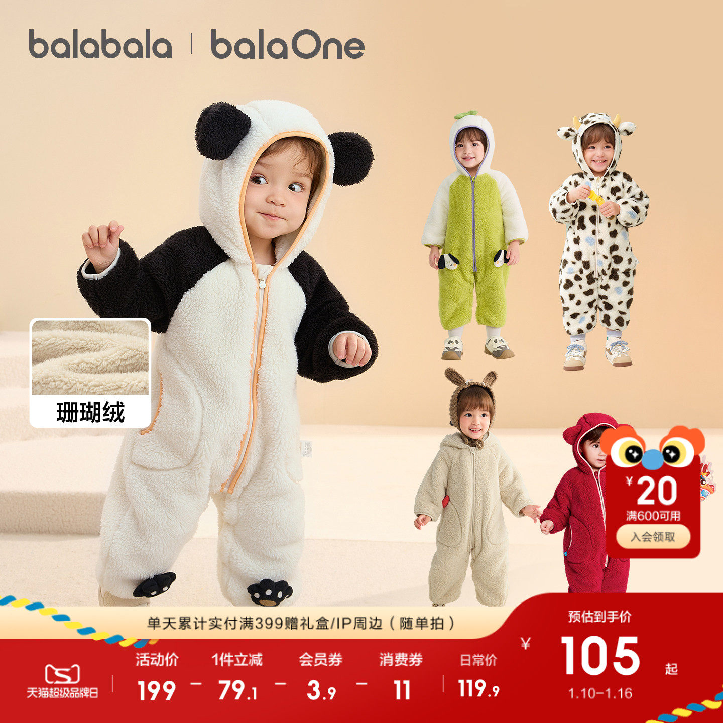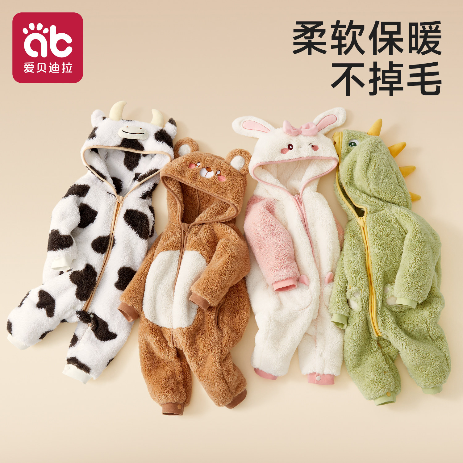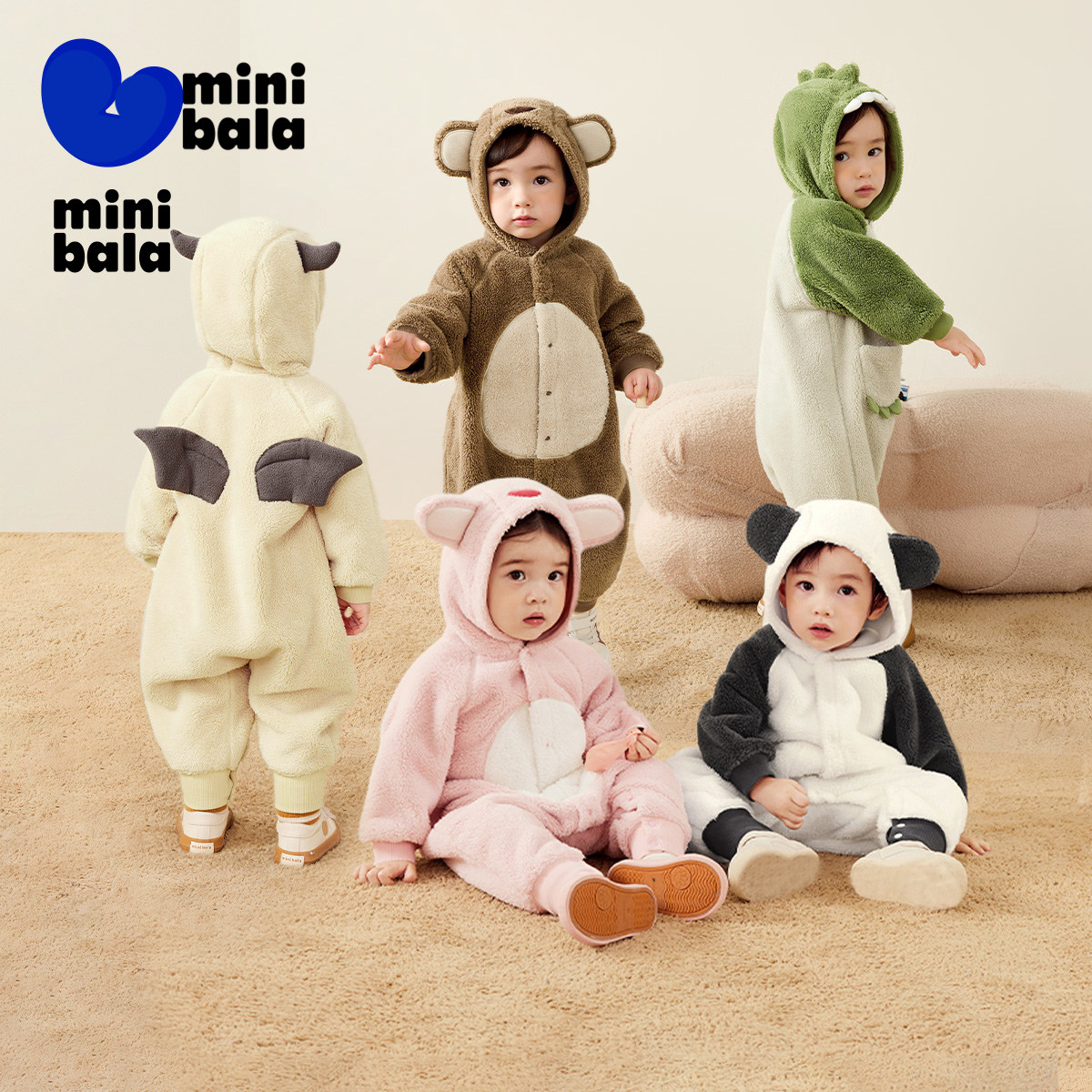 迷你巴拉巴拉婴儿衣服宝宝保暖珊瑚绒萌趣造型外出连体衣爬服冬季