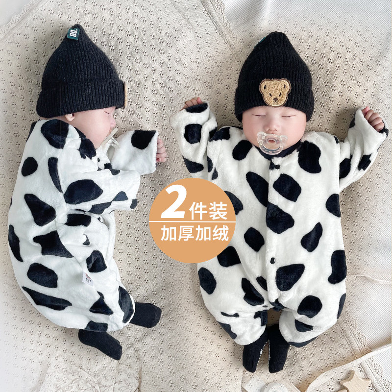 婴儿秋冬款珊瑚绒睡衣小月龄宝宝加绒连体衣服冬季保暖打底法兰绒