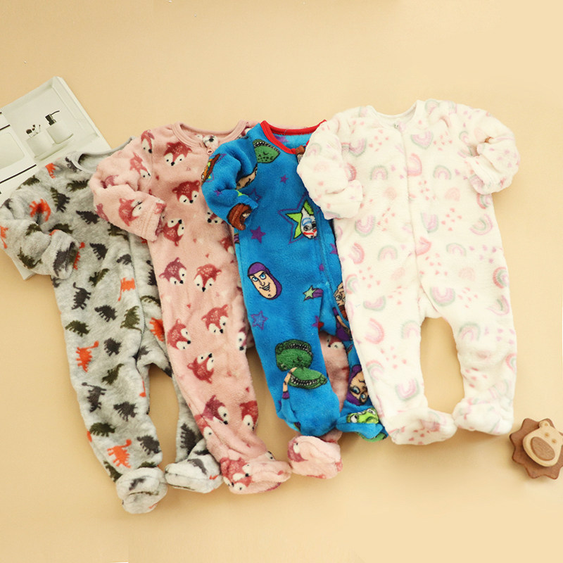 婴儿睡衣秋冬款珊瑚绒连体衣冬季加厚加绒保暖法兰绒宝宝冬装衣服