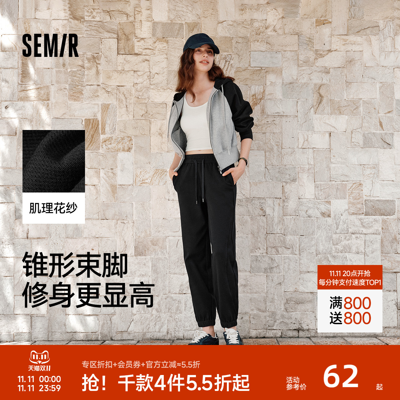森马休闲裤女纯色松紧腰束脚卫裤女士潮流简约风秋季拼接长裤显瘦