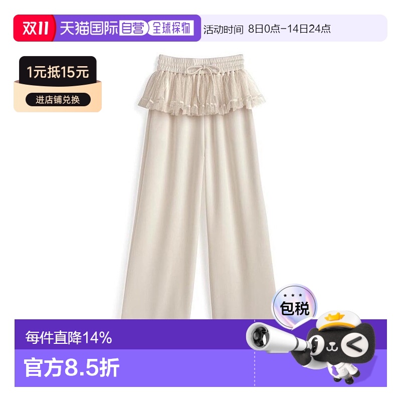 米白色镂空蕾丝拼接裤子女老钱风夏季宽松慵懒大码胖mm显瘦阔腿裤