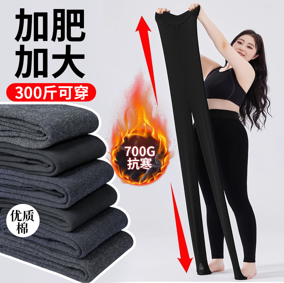 大码女装春季显瘦黑色加绒连裤袜胖mm200斤不掉档外穿丝袜打底裤