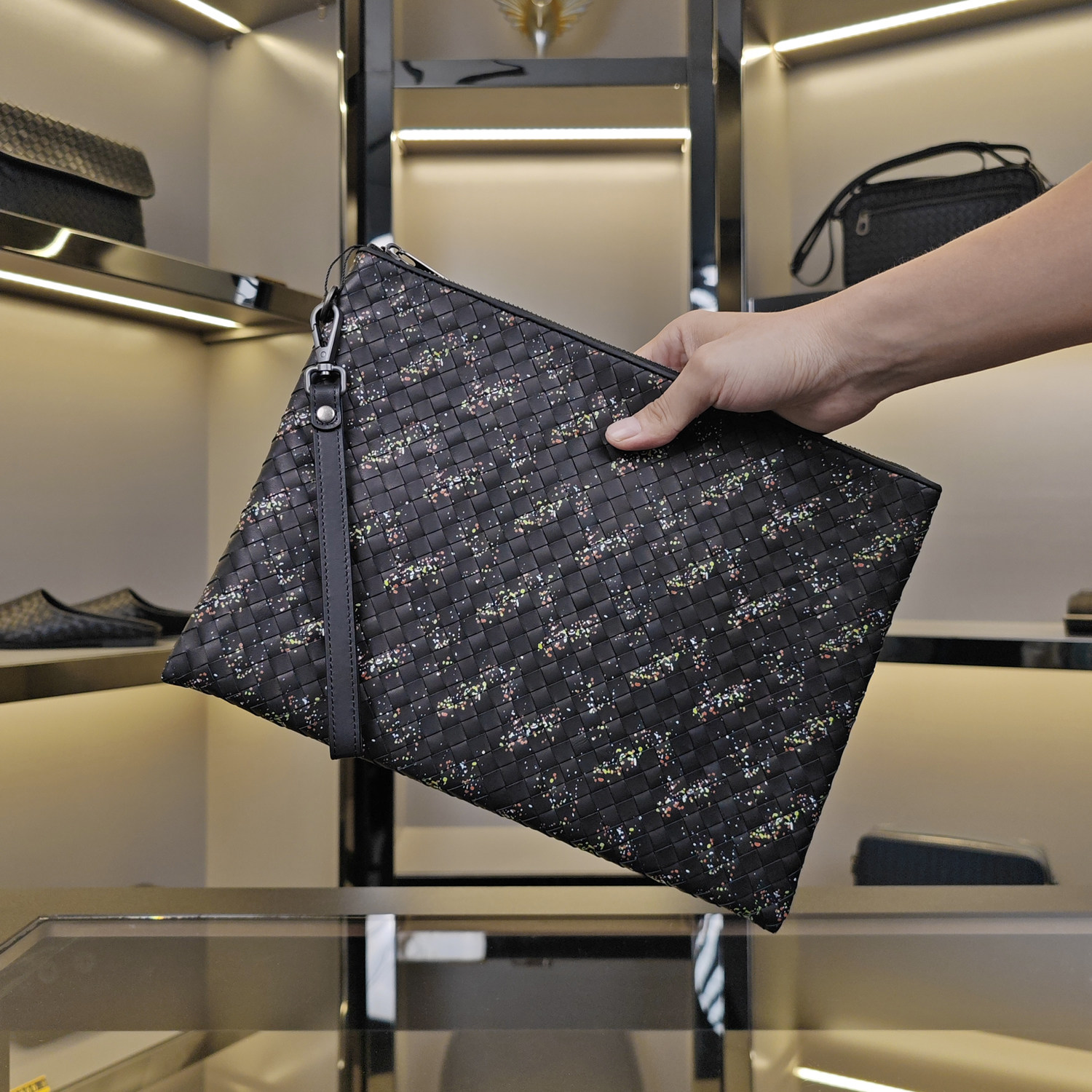 新款编织手包男迷彩潮流信封包男士休闲真皮手拿包青年手抓包男包
