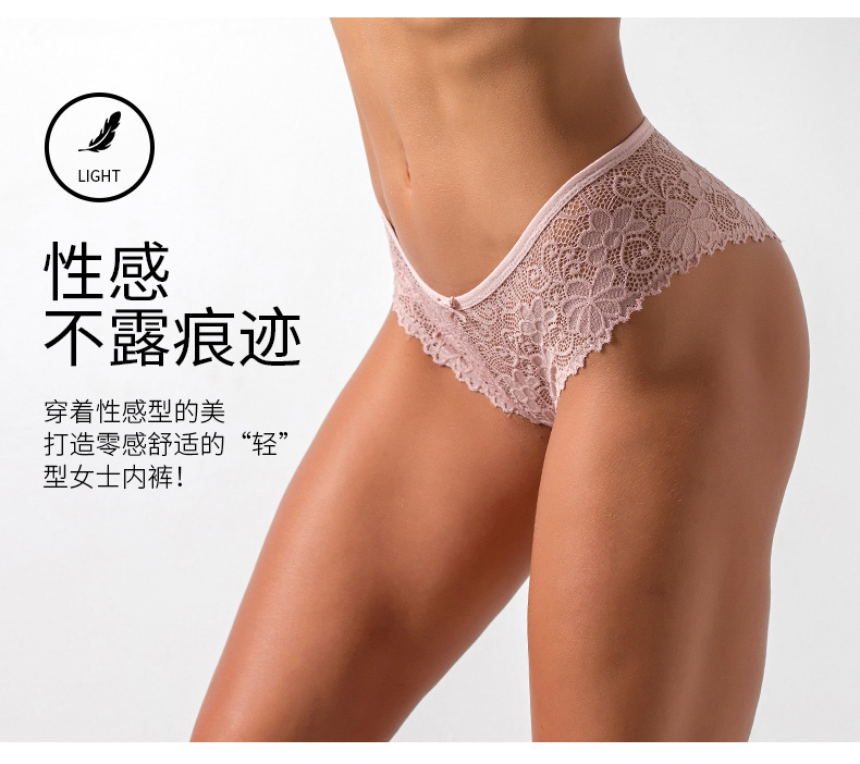 大码性感内裤蕾丝三角裤女无痕透气轻薄女士内裤提臀中高腰三角裤