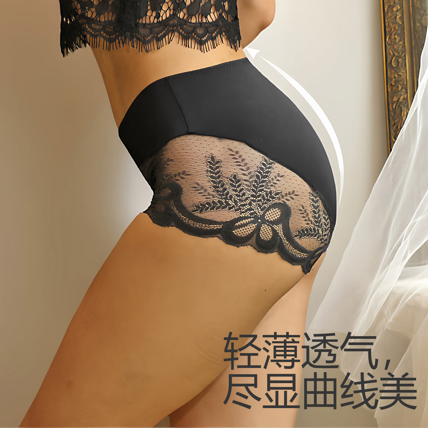 3条装 中高腰提臀收腹超薄网纱三角裤无痕大码性感内裤女蕾丝夏季