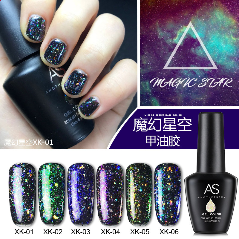 AS美甲胶银河星空指甲油胶芭比胶新款魔幻星空云锦璀璨粗细亮片胶