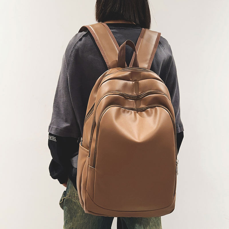 PU皮质防水双肩包女大学生通勤休闲旅行背包男初中生简约质感书包