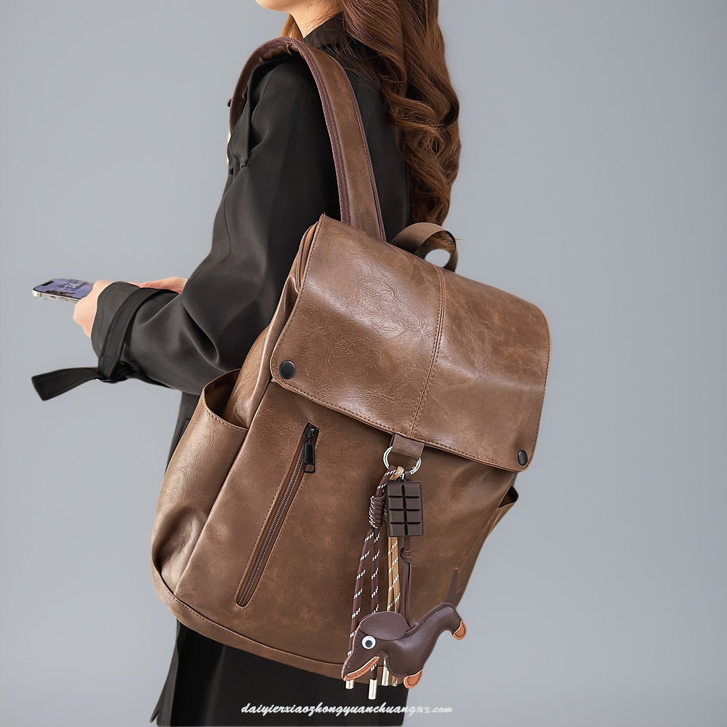 复古英伦学院风双肩包女百搭日系小众PU皮休闲时尚背包大学生书包