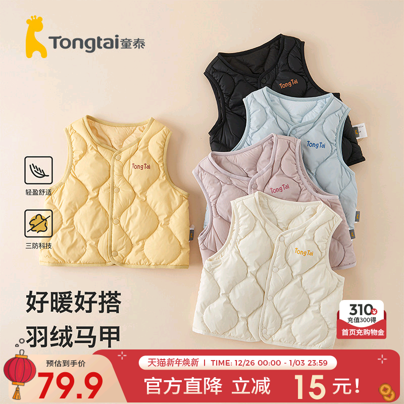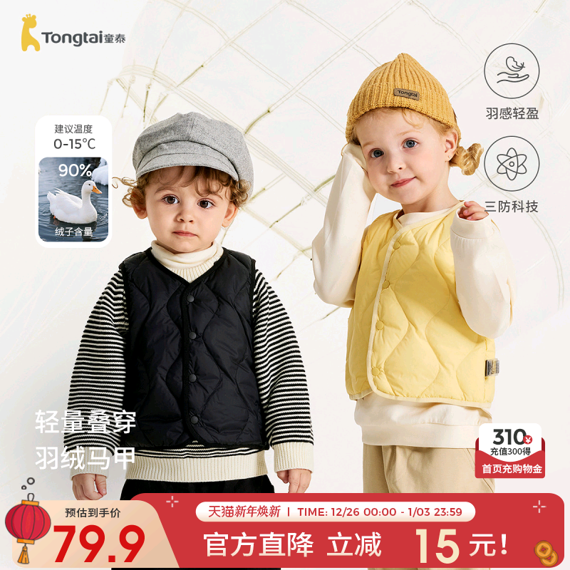 童泰婴儿羽绒马甲冬季宝宝衣服儿童休闲外出上衣男童女童鸭绒坎肩