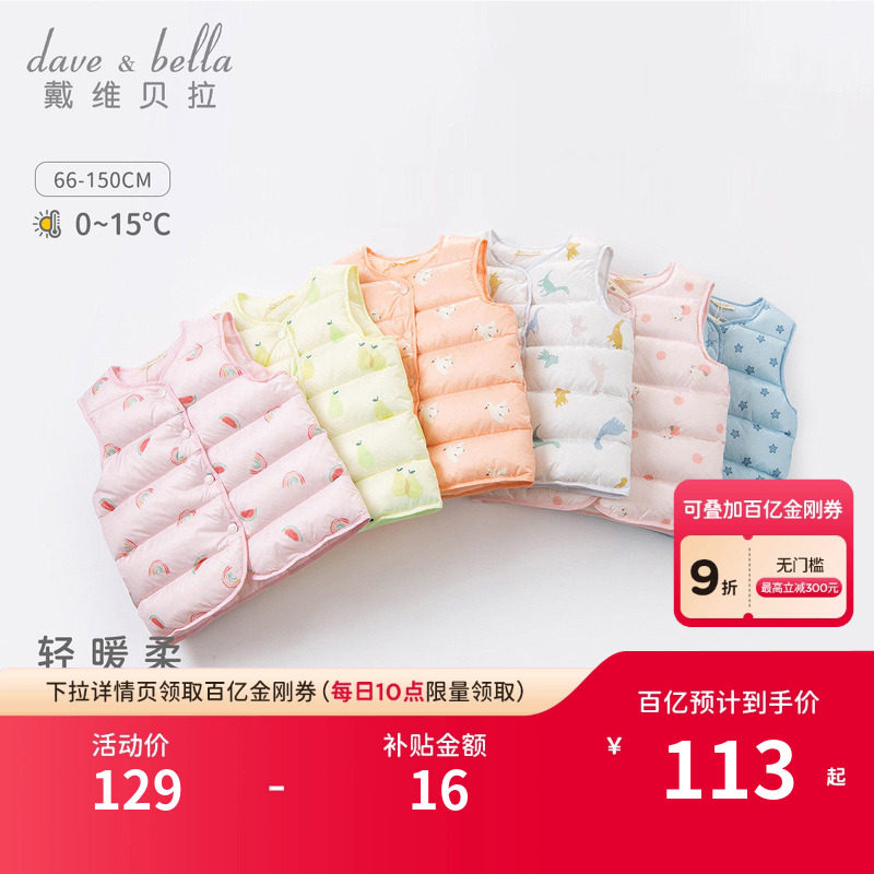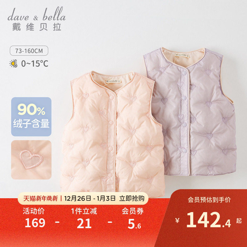 【商场同款】戴维贝拉冬季装儿童马甲保暖新款童装女童羽绒服衣服