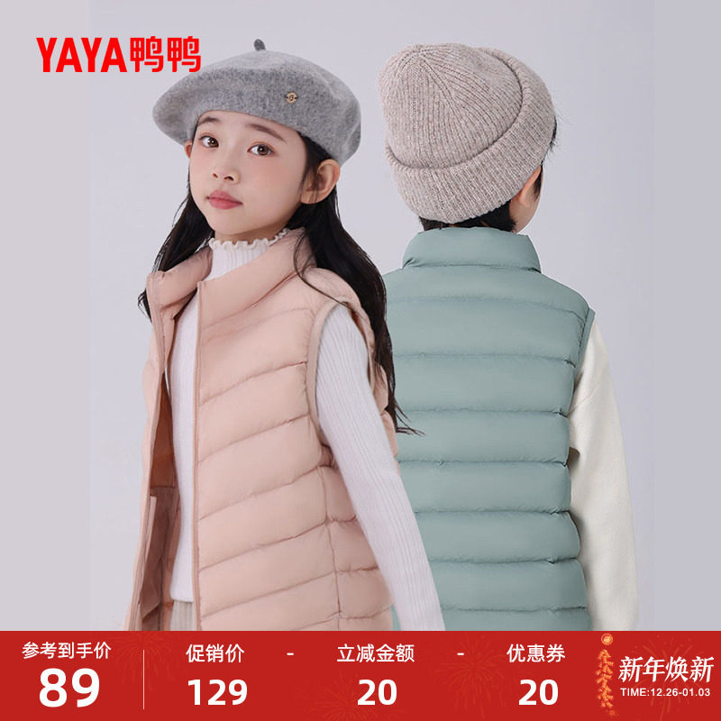 雅鹿儿童羽绒马甲男童女童中大童宝宝内胆秋冬季轻薄外穿婴儿背心