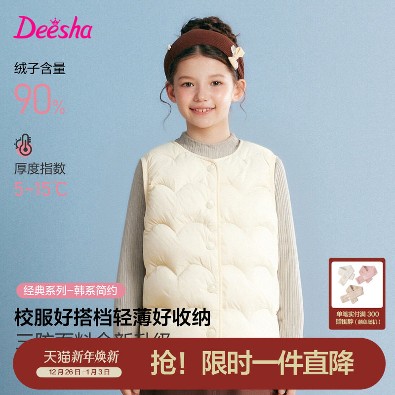 笛莎官方旗舰童装女童羽绒马甲冬季新款内胆女孩儿童轻薄背心外套