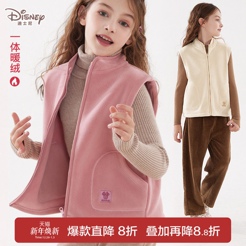 迪士尼女童羽绒马甲冬装2025新款儿童连帽休闲外搭青少年保暖童装