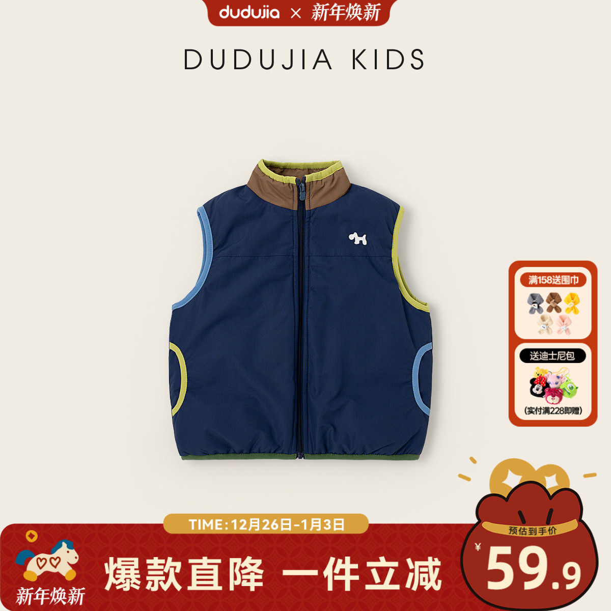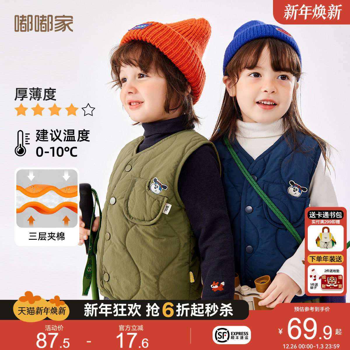嘟嘟家儿童马甲冬季外穿宝宝背心秋冬男童保暖冬装女童加厚坎肩厚