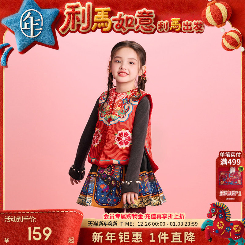 年衣童装女童马甲加绒冬装新款国风新中式儿童坎肩外出马夹拜年服