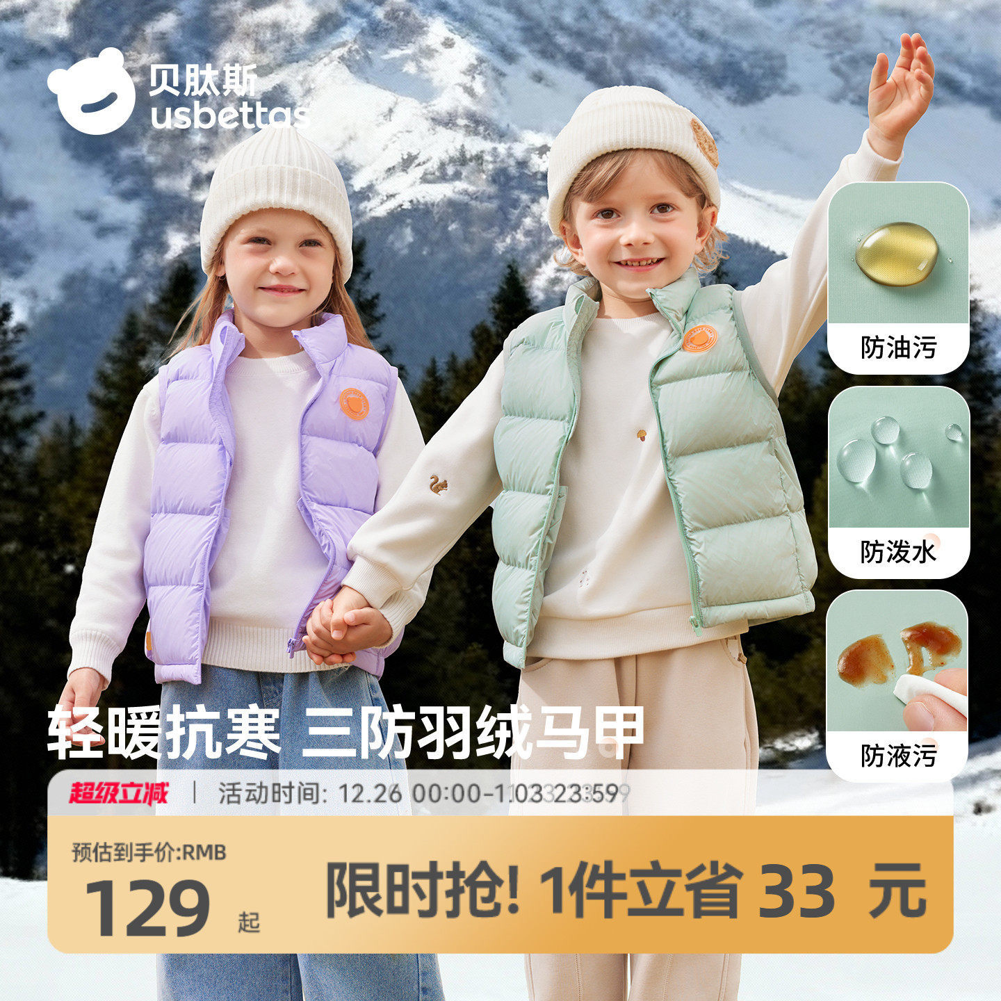 贝肽斯[三防]儿童羽绒马甲2025秋冬新款男女童宝宝保暖外穿背心