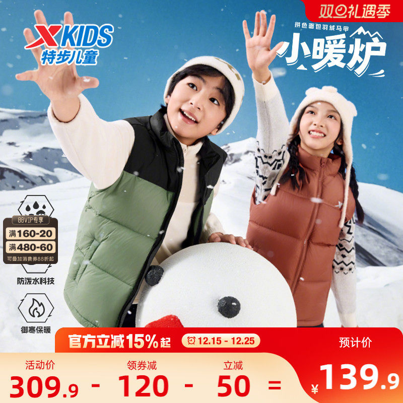 特步童装秋冬新款儿童外套男童保暖羽绒马甲中大童防寒服外穿冬装