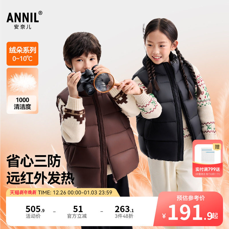 安奈儿童装男女童立领羽绒马甲2025冬新款休闲纯色三防保暖马夹