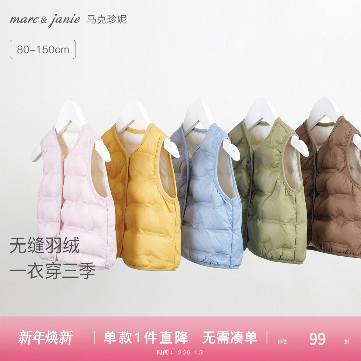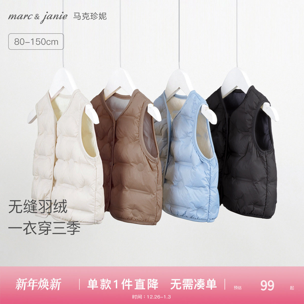 马克珍妮男女童羽绒马甲宝宝冬装 儿童保暖羽绒服内胆背心240911