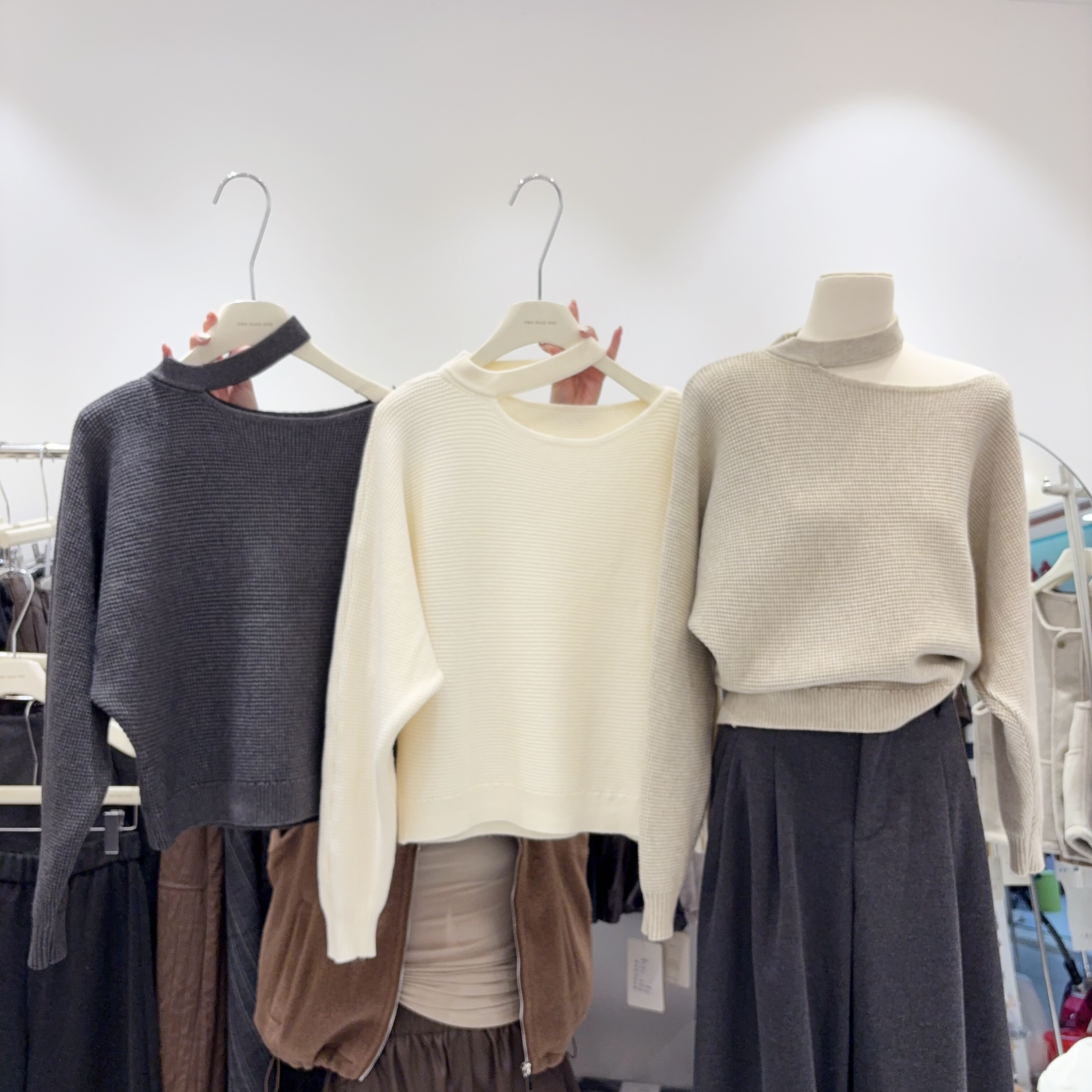 十三行现货2025秋冬新款韩版时尚慵懒风露肩挂脖毛衣S68445W145