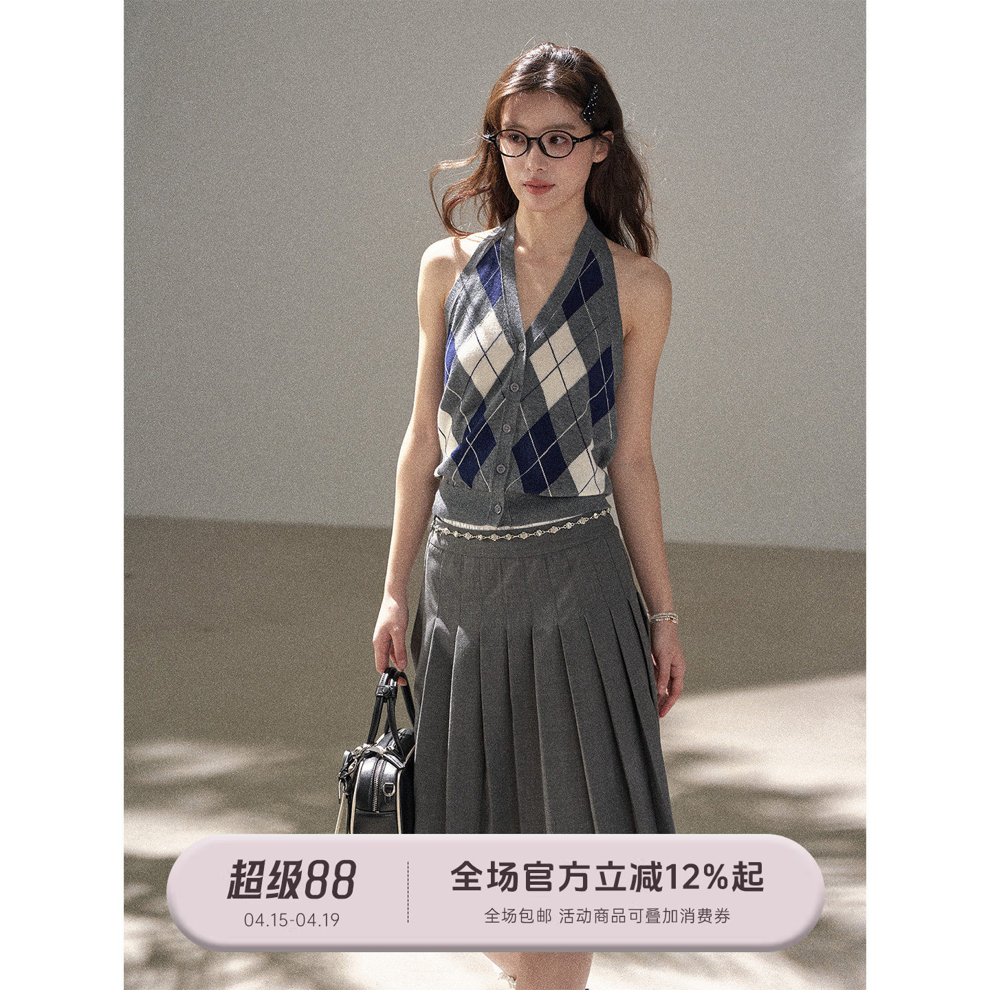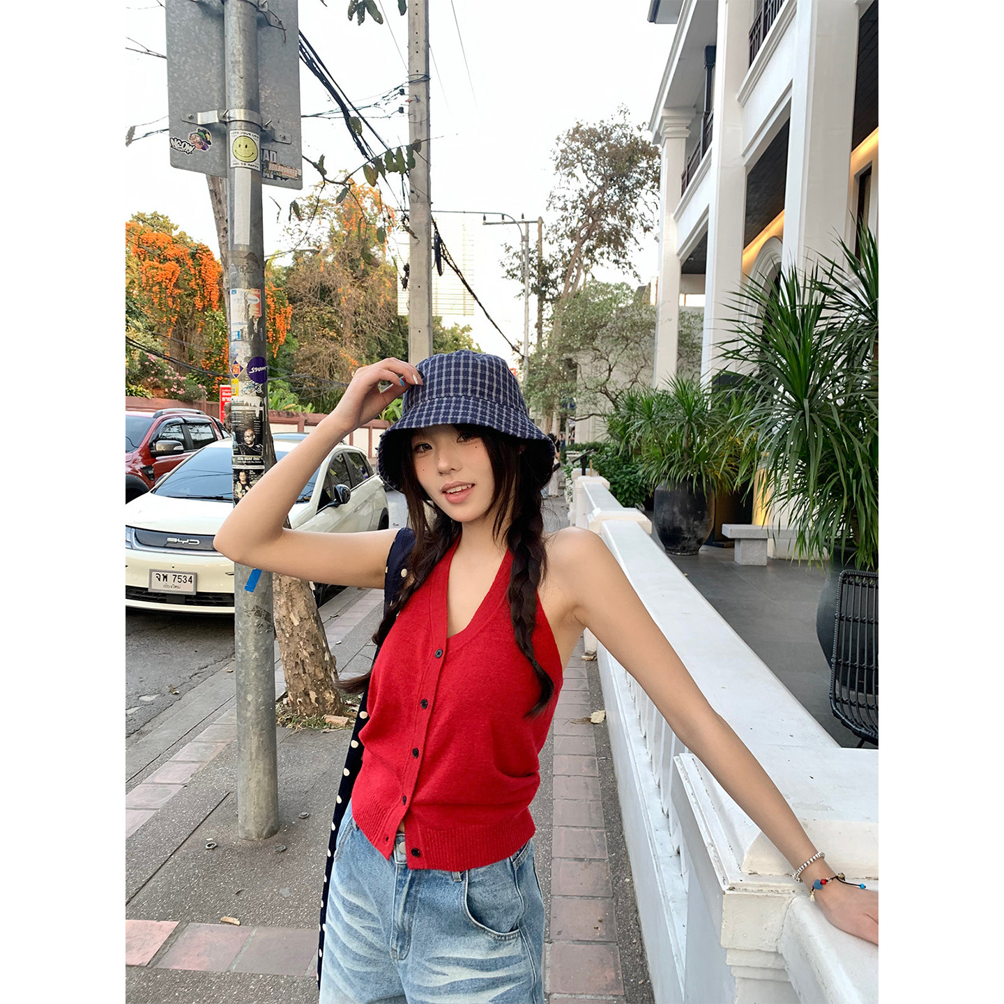 荒荒家 miu系针织挂脖背心2026春夏新款小众无袖马甲毛衣薄外套女