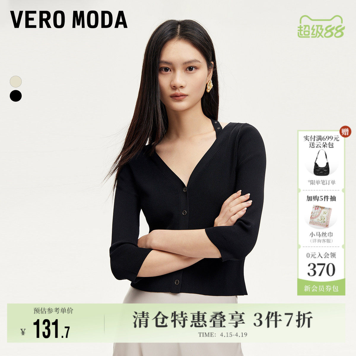 Vero Moda奥莱针织衫毛衣女春夏新款V领七分袖挂脖短款弹性上衣