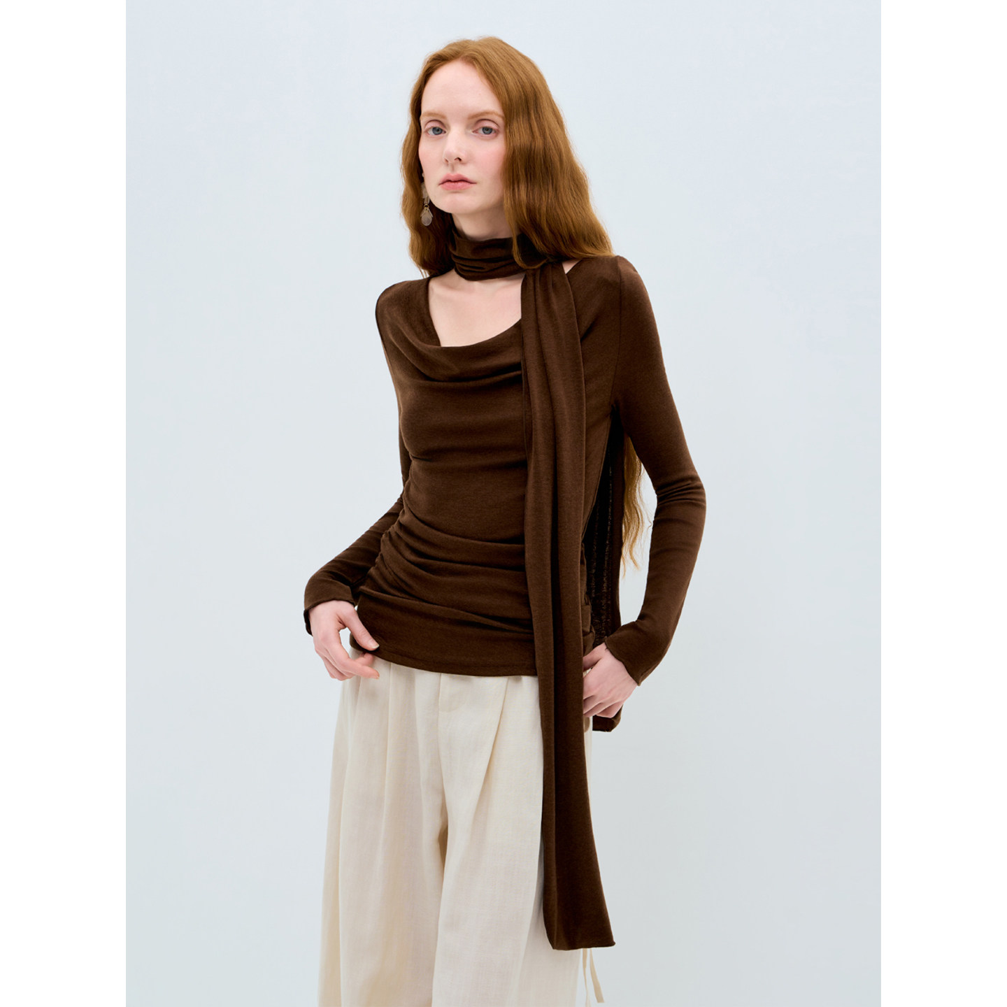 LIMONN 绝美荡领莱赛尔羊毛衫 棕色挂脖打底针织衫T恤温柔上衣冬