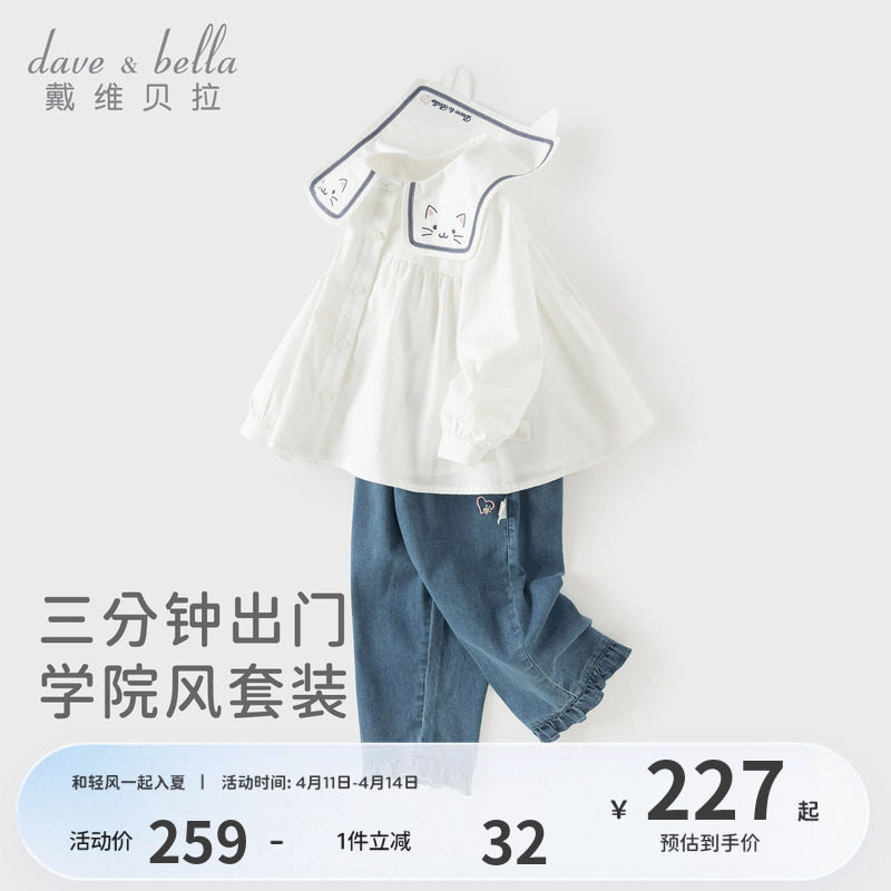 戴维贝拉儿童九分裤套装2026春季新款女童学院风衬衫牛仔裤女宝宝