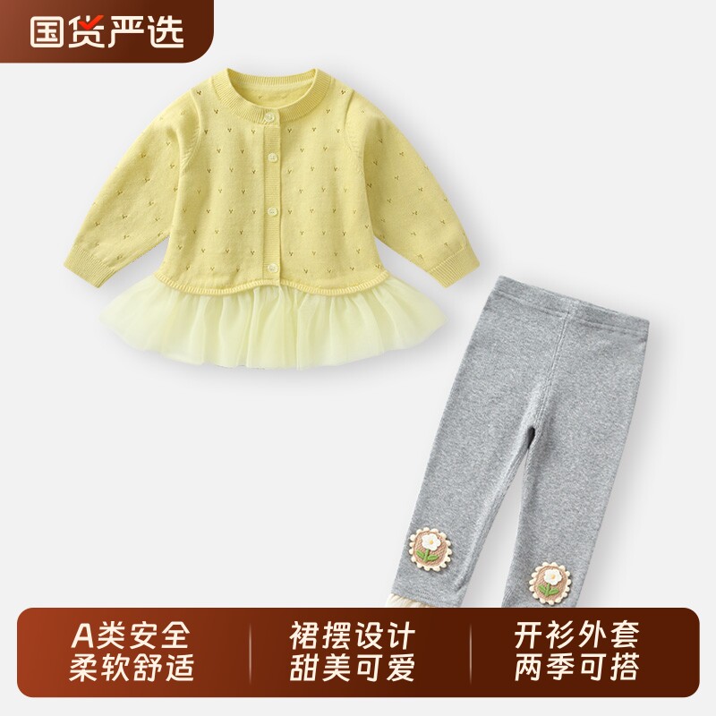 女宝宝套装春装新款小外套女童针织开衫春季薄款婴儿洋气上衣衣服