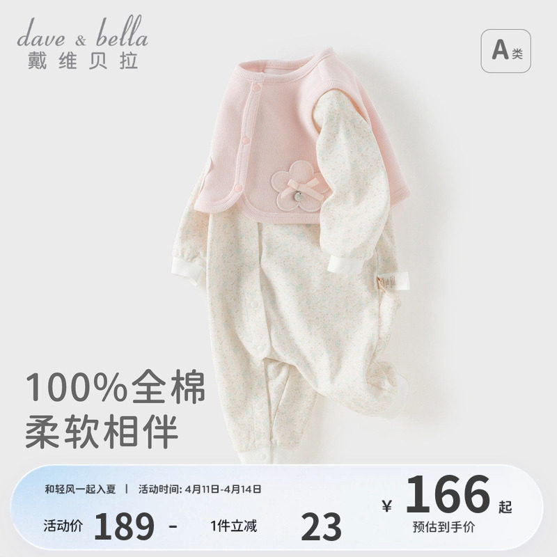 婴儿衣服春装连体衣女宝宝春装满月百天针织哈衣春季套装幼儿爬服