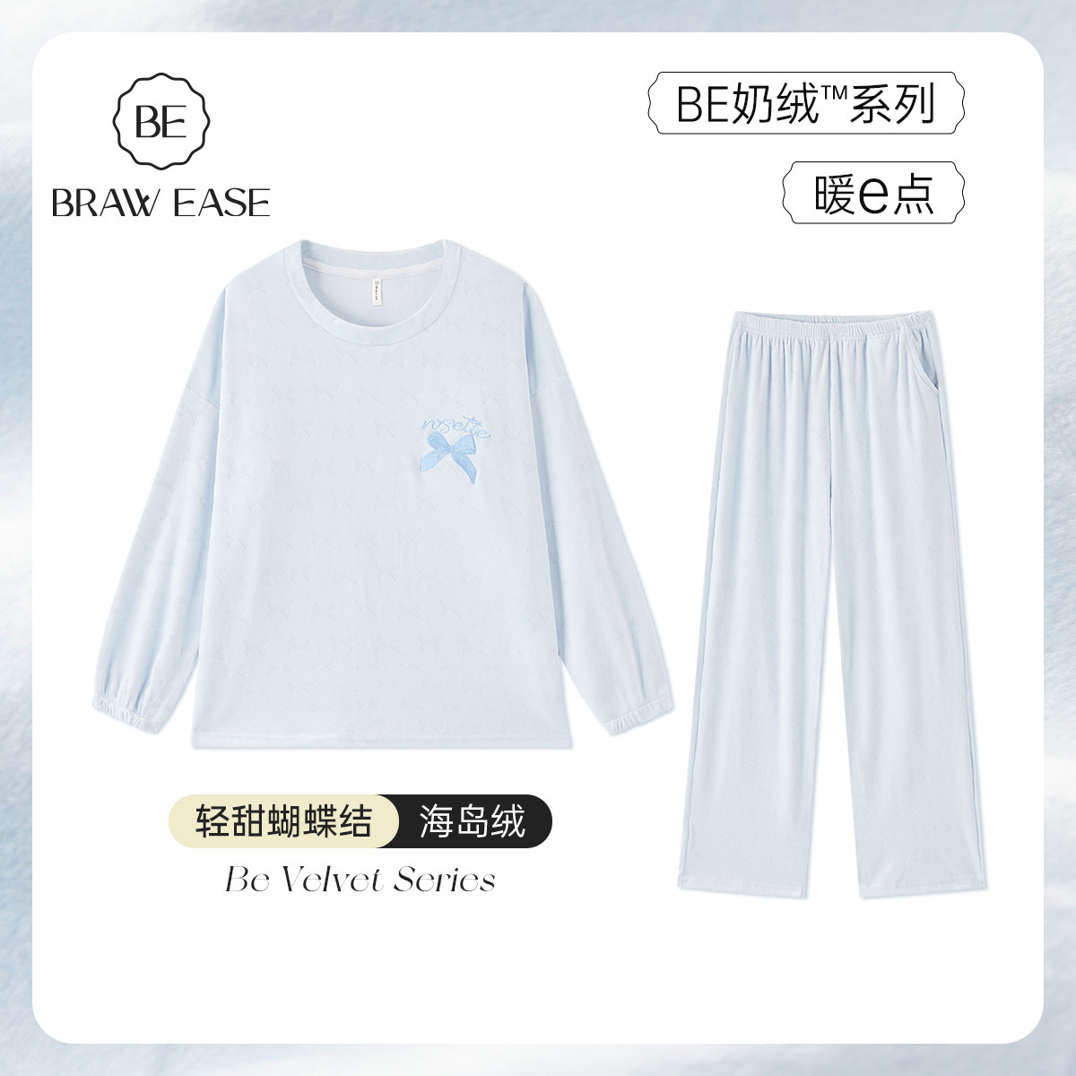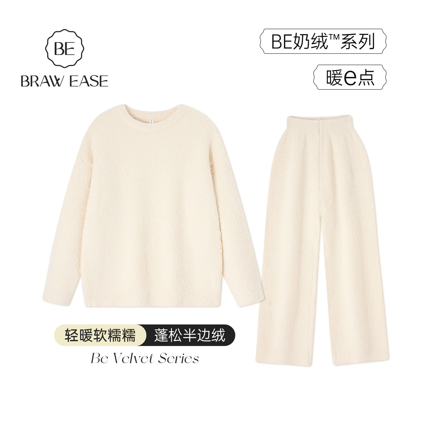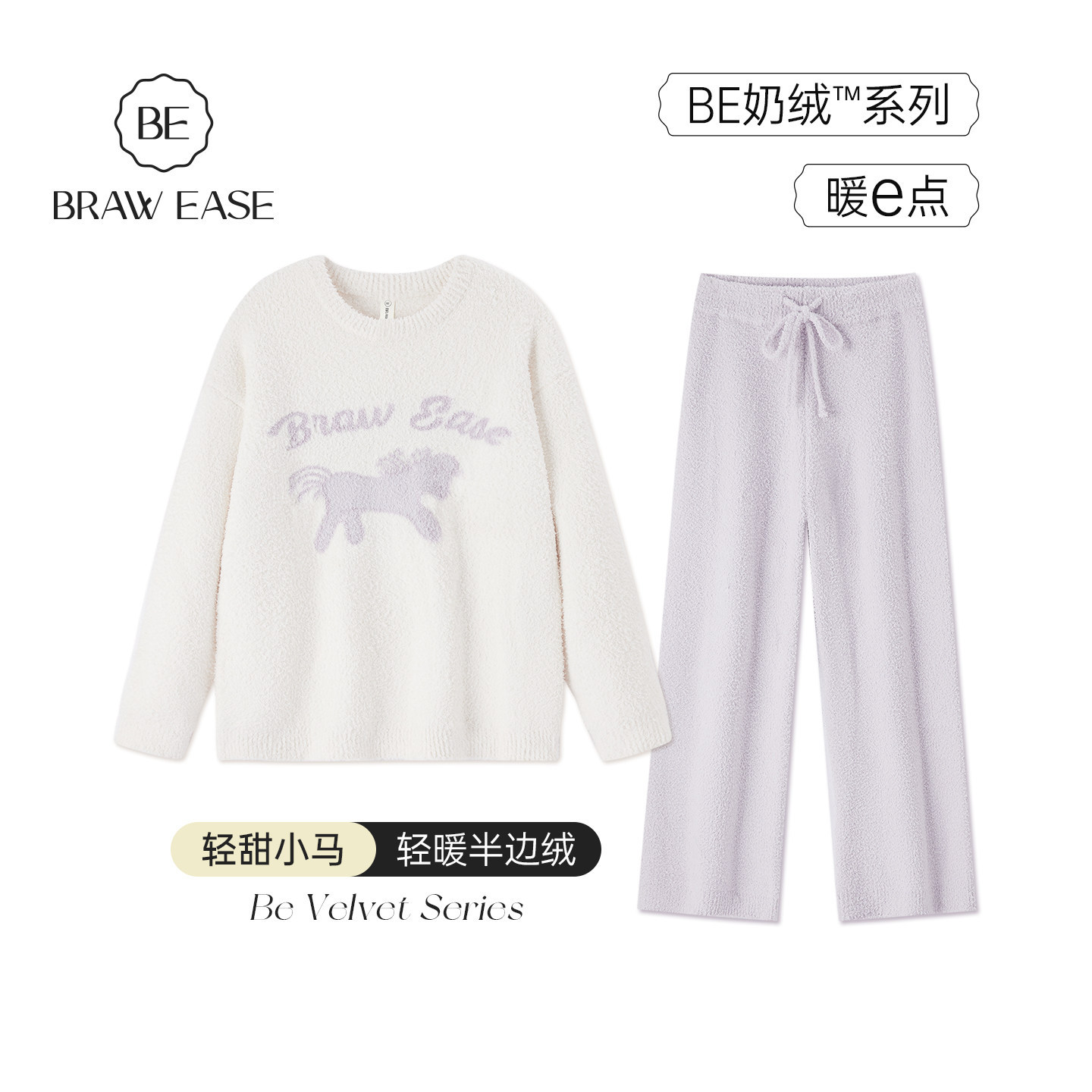 BE半边绒睡衣女款冬季长袖加绒加厚秋冬珊瑚绒冬天套头家居服套装