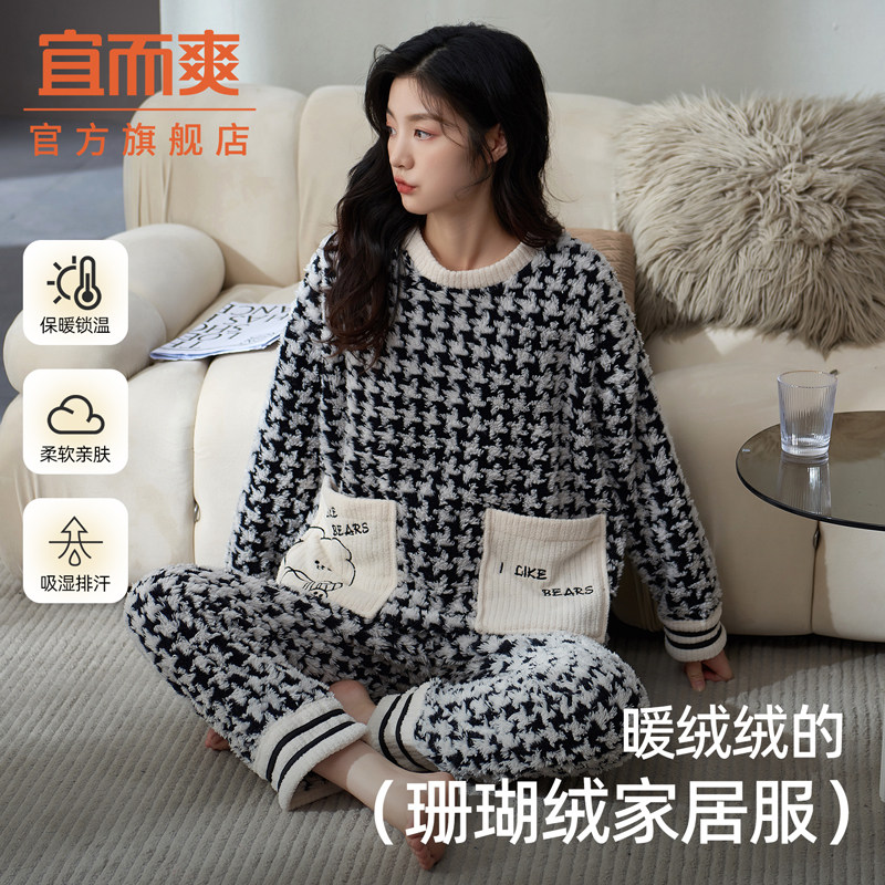 - 珊瑚绒夹棉睡衣女