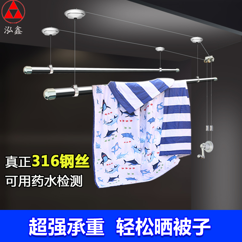 阳台升降晾衣架 手摇杆式晾衣杆室内手动自动晒衣架 不锈钢圆杆