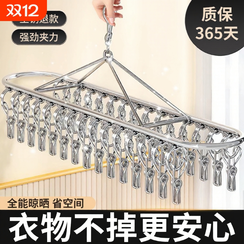 不锈钢多夹子晾衣架家用多功能晒内裤神器阳台防风袜子晾晒架挂衣