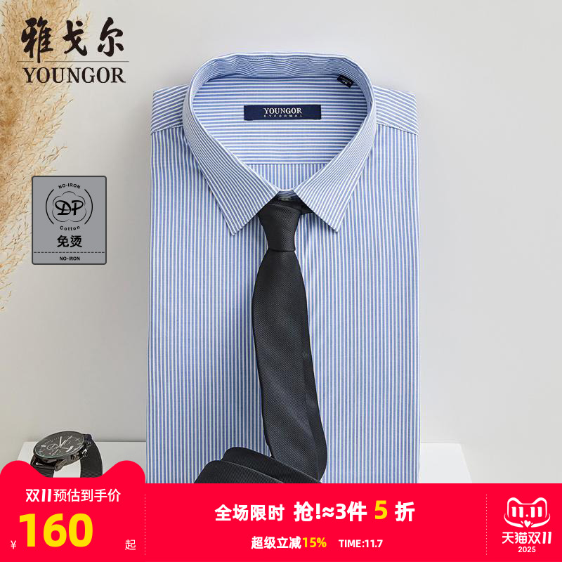 【条纹100支DP免烫】雅戈尔春秋新品商务休闲棉弹新疆棉长袖衬衫