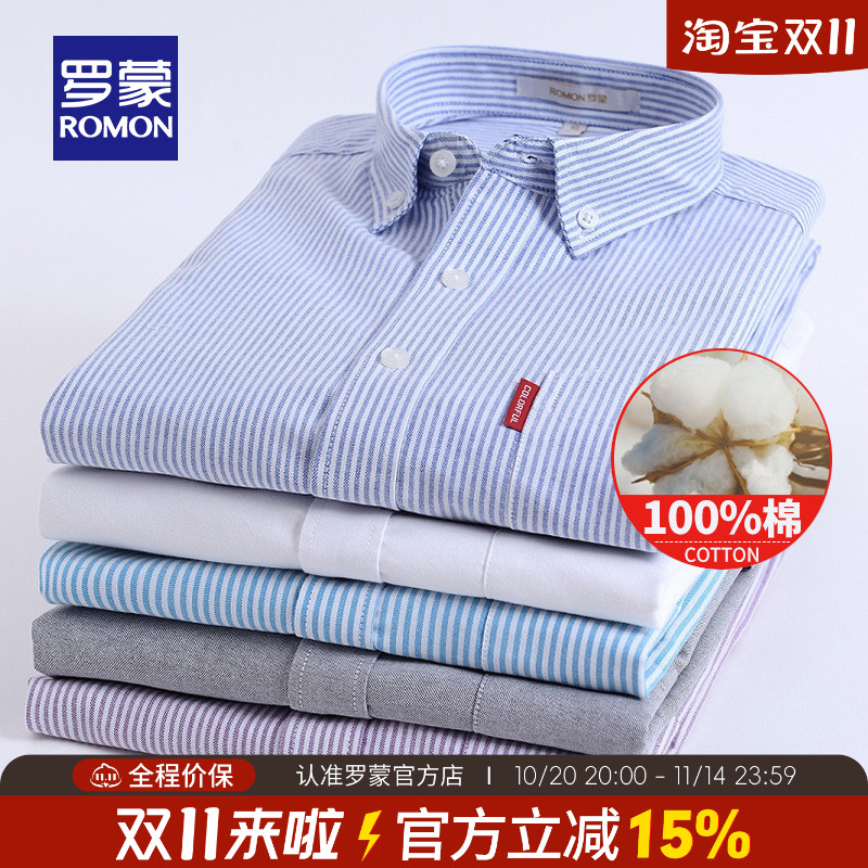 【100%棉】罗蒙男士纯棉牛津纺休闲衬衫2025秋季新款长袖条纹衬衣