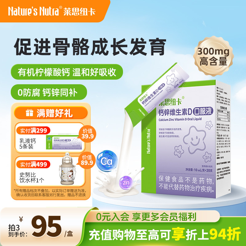 莱思纽卡婴儿童成长补钙锌条片液体D3婴幼儿高K2乳钙宝宝部分临期