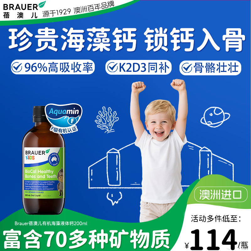 Brauer蓓澳儿液体钙婴儿海藻钙婴幼儿补钙儿童宝宝钙镁锌口服液