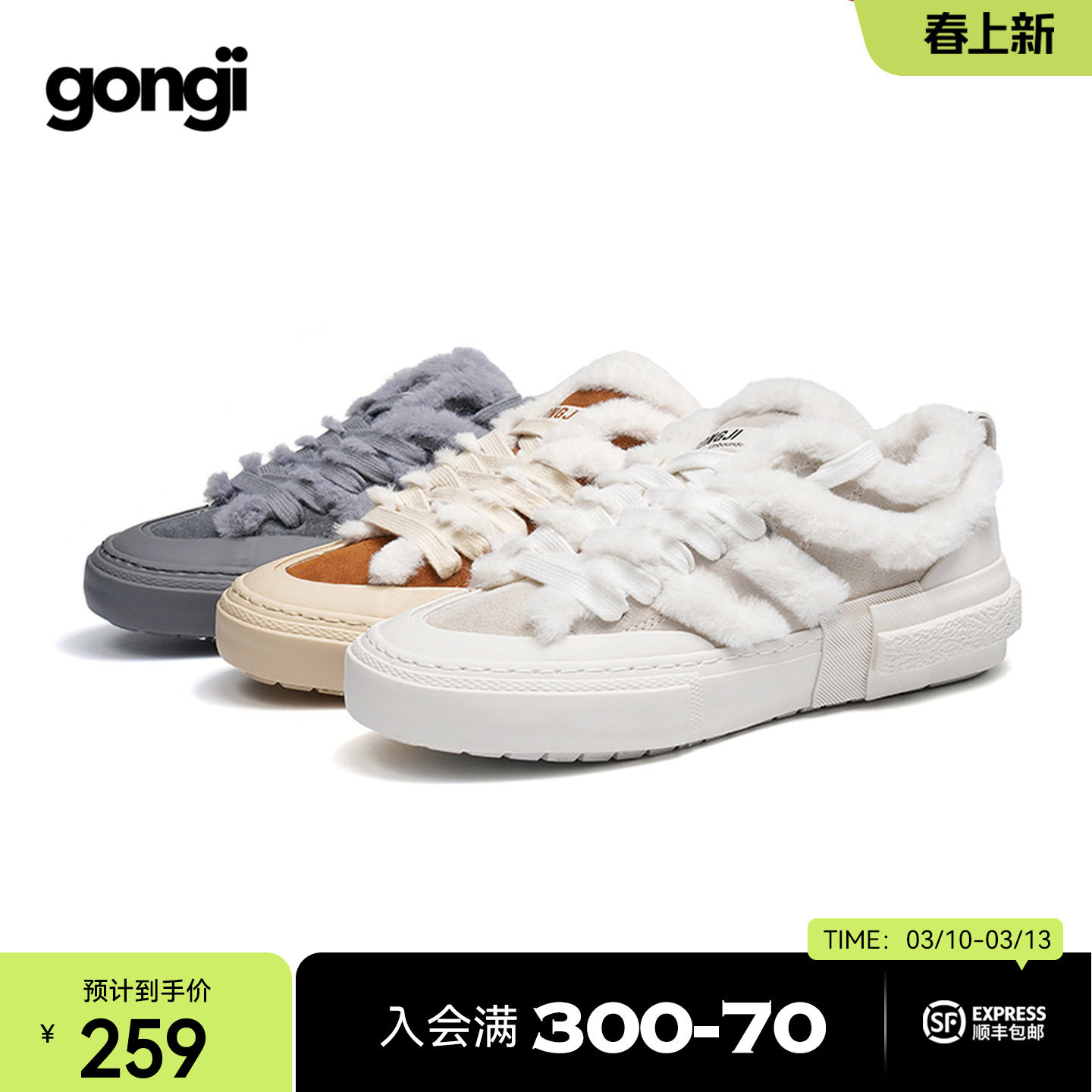 【清仓】GONGJI暖绒板鞋加绒女秋冬新款兔毛百搭软底二棉鞋毛毛鞋